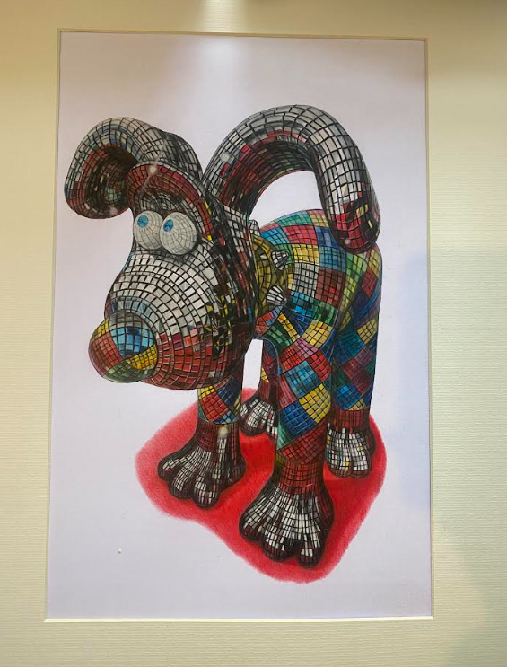 I'm a coloured pencil artist, who primarily draws pets. However, the mirror effect on the mosaic tiles seemed like a perfect challenge to draw and I really wanted to capture the shiny, colourful disco ball Gromit. 10,000 shimmering tiles that catch the light from every angle, such a marvel to see! And with the Red carpet beneath reflecting in the tiles, I had to get to work drawing!